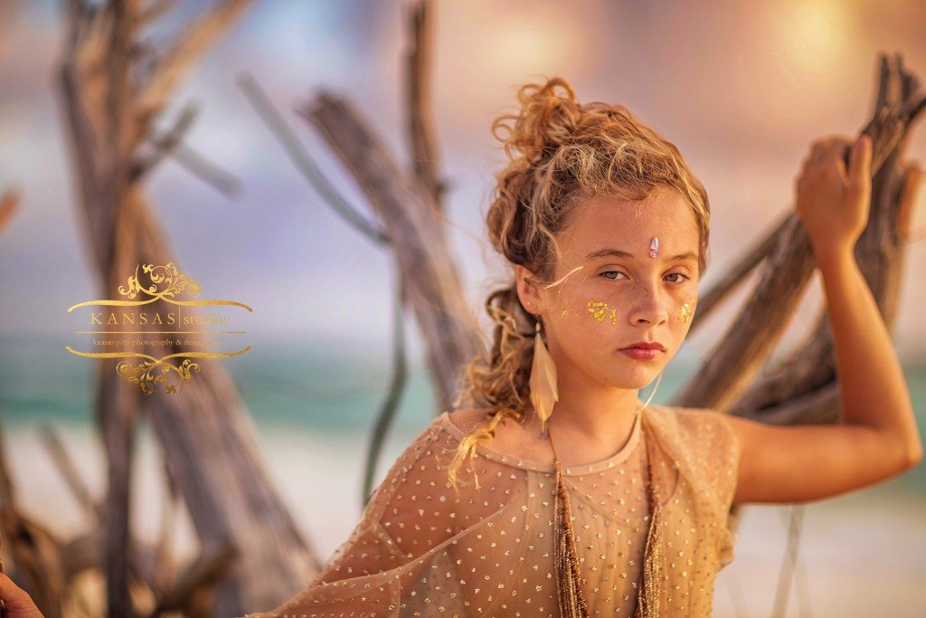 We went through the very few things we brought the The Bahamas (www.instagram.com/pittspartyofsix) and put together a gold shimmering outfit and gave her sparkly cheeks and a fabulous necklace I stole from my cousin, Kate. The shirt is from Forever21 as is the skirt (it is just clipped) and then she has a nude bodysuit underneath. In some of the images I use the “skirt” (a/k/a cape) that I used in my Exumas, Bahamas family session of my family (HERE).