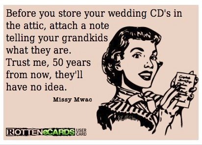 Why? Lets take a look at the image below…Remember The Oregon Trail? Come on, you know you do. We slipped that big floppy disk into those old Macintosh computers and played our hearts out. So what happens if you had gotten married during that period and only received your digital images on that floppy disk? When is the last time you saw a drive for those? What about the next great thing, the updated one that came in neon colors and was so “compact”? I have college papers on those disks that I would love to read but alas, I can’t anymore. What was en vogue shortly after I began my photography business were cds. But you know what? My MacPro I ordered a year ago didn’t have an option for a CD drive and if I wanted it on my MacBook (ordered about 2 years ago) it was an extra charge. Technology is moving faster these days and storage is becoming outdated shortly after its introduction.